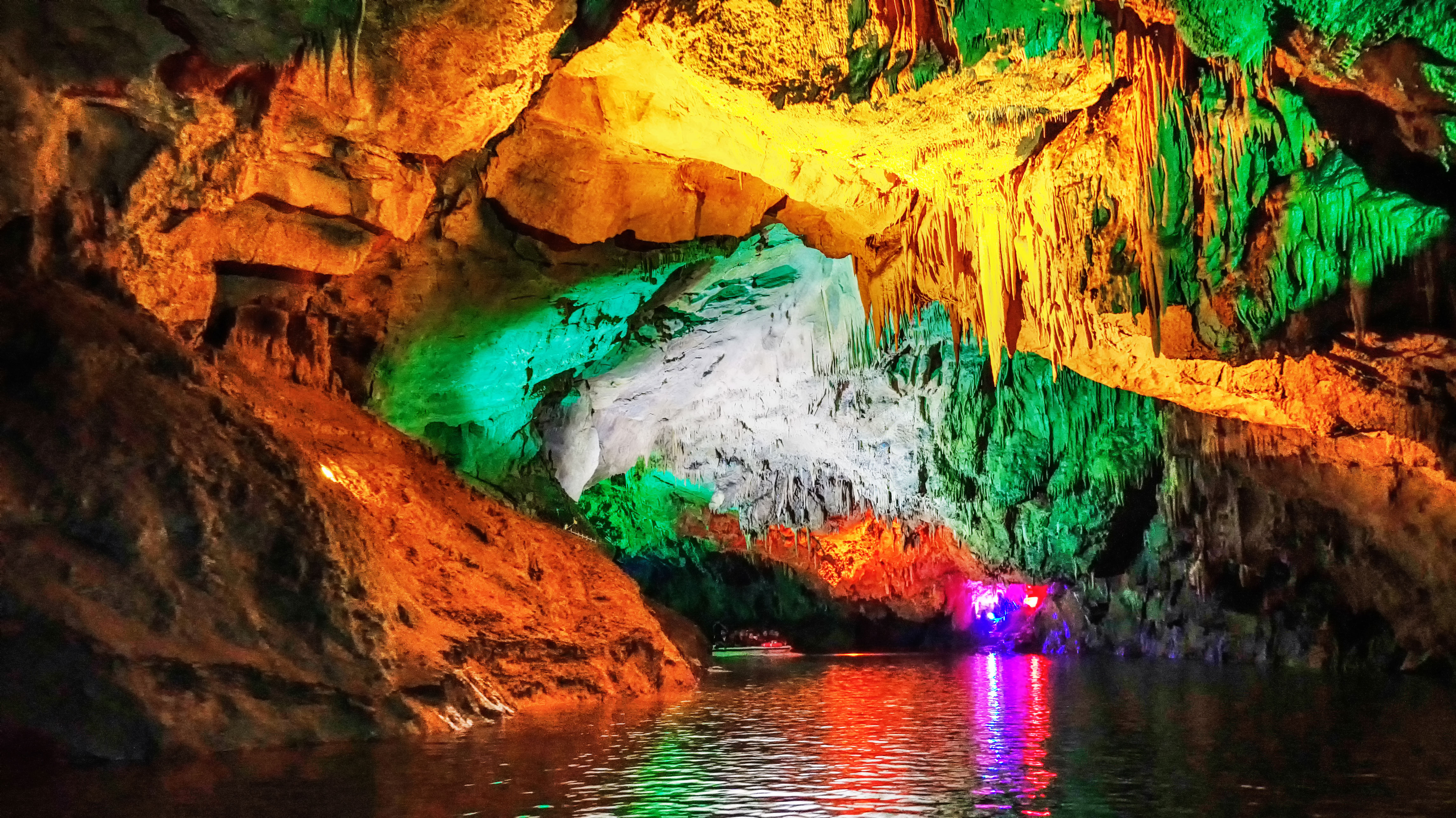 乘坐游船在暗河上缓缓前行,灯光映照下的钟乳石如梦似幻,仿佛闯入了一个神秘的地下宫殿。洞外还有古生物馆、硅化木王国等景点,带你探索亿万年的地质变迁。